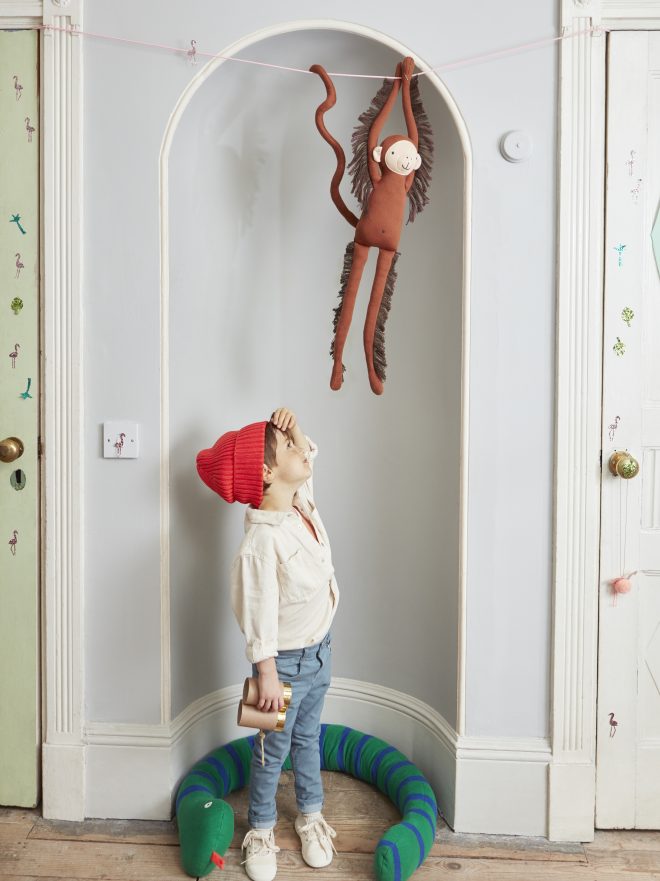 Baboo the monkey is a sensational toy for little people to have adventures with, or snuggle up to when they're sleepy. He's beautifully crafted from knitted organic cotton, with fabulous fringe detail, a long curly tail, and sweet stitched features. A really special toy for a really special girl or boy!