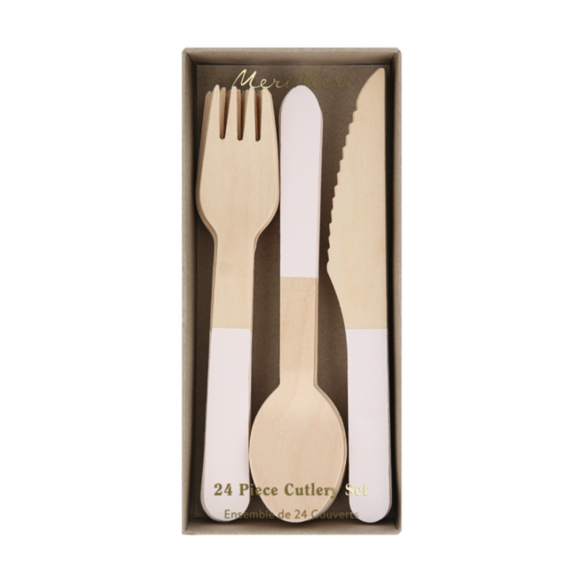 Who says disposable cutlery can't make a statement? Forget the ordinary, our wooden cutlery sets are a fun reimagining of classic silverware, blending practicality with style. Designed with a nod to elegance, they are ideal for picnics, garden parties, BBQs, camping adventures, or anytime you're skipping the sink. This set features gold foil details for a refined effect.