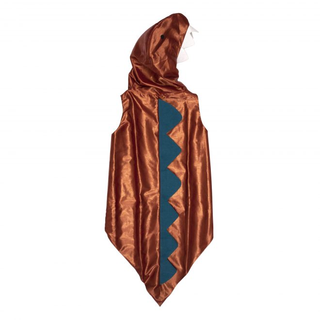 Little dino lovers will adore this Dinosaur Dress Up set! It makes a fantastic gift and and an excellent addition to a dress up box. The hooded jacket is crafted from red and copper lame. It has felt facial details and spikes sewn on the back. Perfect for lots of roaring good fun!