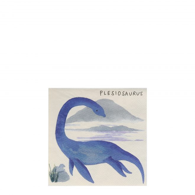 These Dinosaur Kingdom small napkins will look terrific at a dinosaur party. Featuring beautifully illustrated dinosaurs with copper and green foil details.