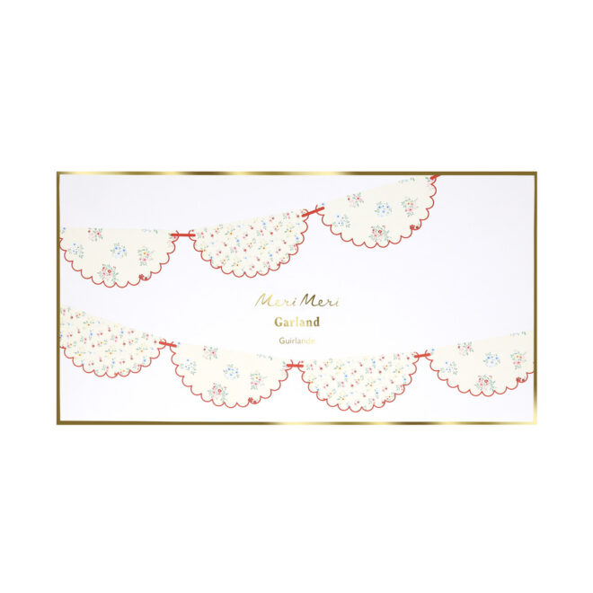 Dainty posy bouquets and ditsy floral clusters add effortless elegance to any setting. These classic designs are influenced by fashion-forward floral pattern trends, which include a touch of red to keep the look modern and fresh. This statement garland, with a stylish scalloped edge, will give a sophisticated look at baby showers, bridal showers, afternoon tea or garden parties. Hang it on a party table, wall or mantel or in a porch or window, for instant decor.