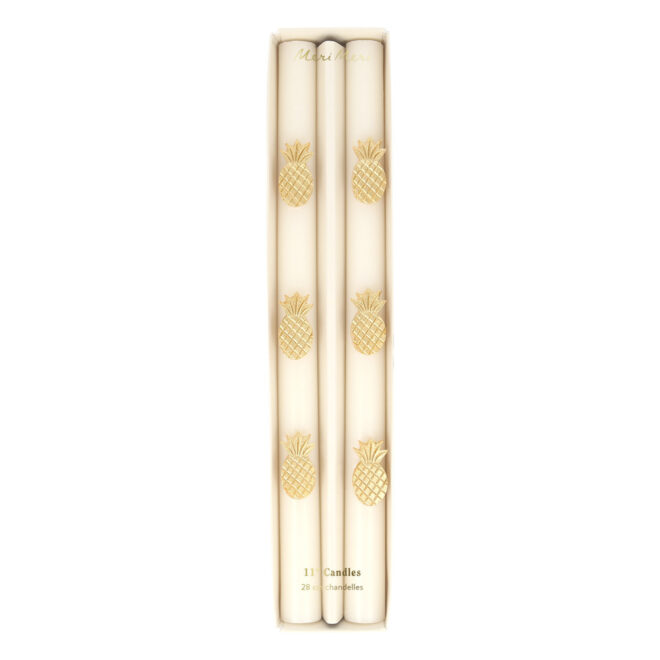 Add a tropical look to any celebration with these pineapple candles. The golden touches of colour will brighten any gathering, and can help set the mood for a garden party, beach party or BBQ. Place on the table as a centrepiece, or use as part of your summer party decorations. If you don't light them you can reuse again and again. They make a wonderful present, especially as a host gift.