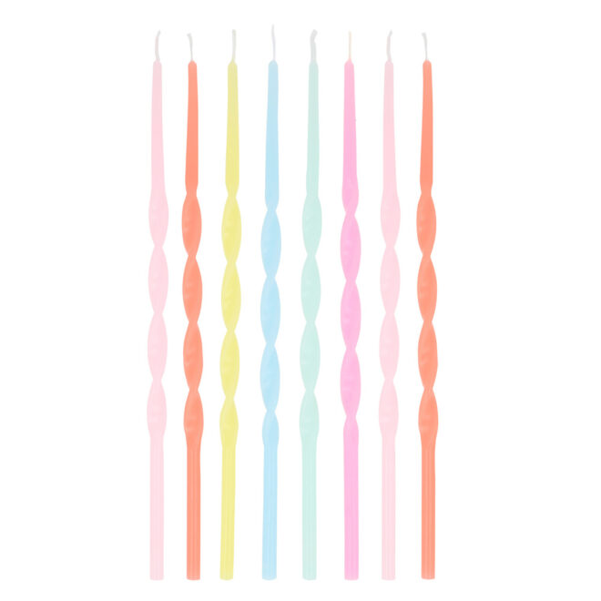 Set an unforgettable scene for your party with our exclusive elegant candle set, crafted in collaboration with Liberty, the iconic London department store. The combination of the twisted shapes, with a rainbow of six pastel colors, will instantly add statement to your celebrations. These candles are beautifully presented in a matchbox-style box with a Liberty print design.