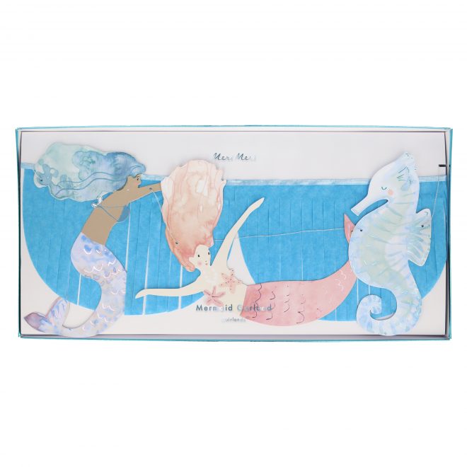 Make a mermaid, or under-the-sea, party look amazing with these gorgeous fringed tissue paper garlands. They feature beautiful mermaids and seahorses, with shimmering blue and pink foil detail.