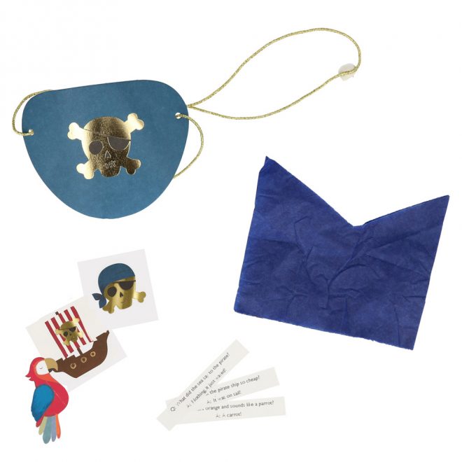 - Garland 3 - Parrot, with honeycomb detail; skull and crossbones with shiny foil eyepatch; palm tree with fold out leaves; pirate ship and pirate octopus