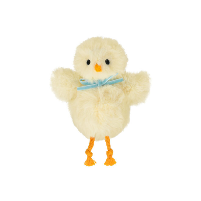 What's inside this colorful vintage-inspired paper Easter egg? Why it's only the cutest and softest plush chick toy, ready to hatch out and play! The extra special details of a luxurious pale blue velvet bow and little knotted cord legs are sure to delight. A fabulous Easter gift, and a great alternative to chocolate!