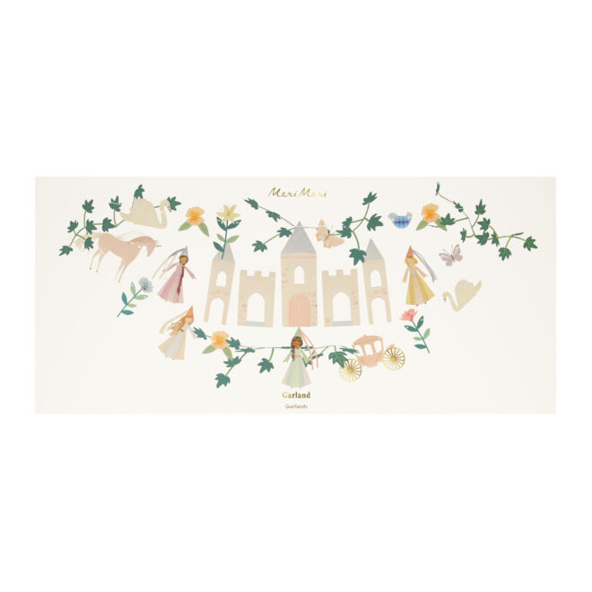 Create an enchanted fairy tale setting with this most majestic garland! Featuring princesses, a castle, a unicorn, and a carriage, it will look magical at your princess party. It's also a beautiful decoration for the bedroom making your kids feel like royalty all year round.