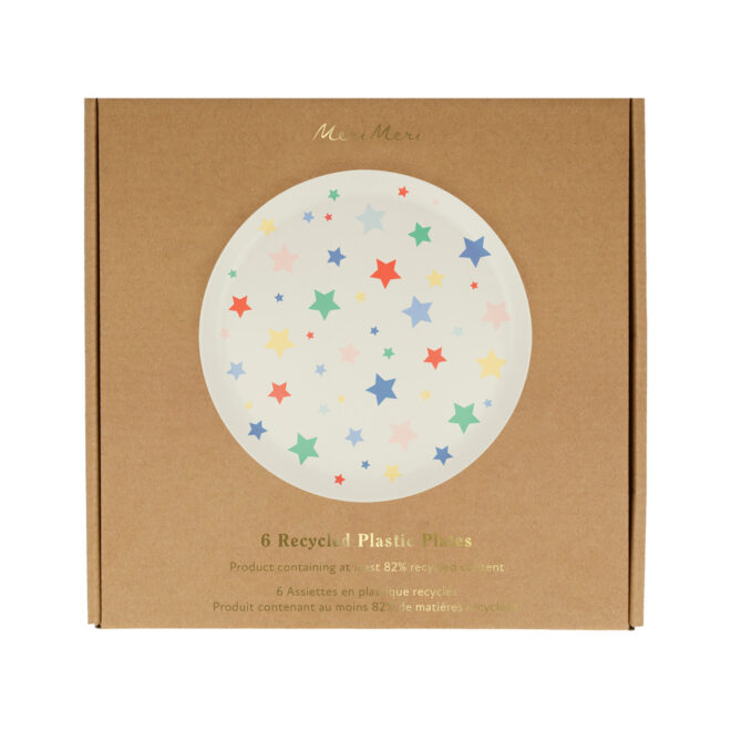 Shine bright like the star you are! These super-recycled plastic plates can be used time and time again. The fun star pattern is perfect for any special celebration, and the bright colors will complement any party theme.
