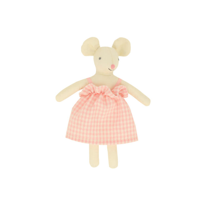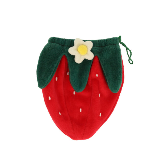 • Mini doll that comes in a strawberry shaped velvet drawstring pouch with lining.
