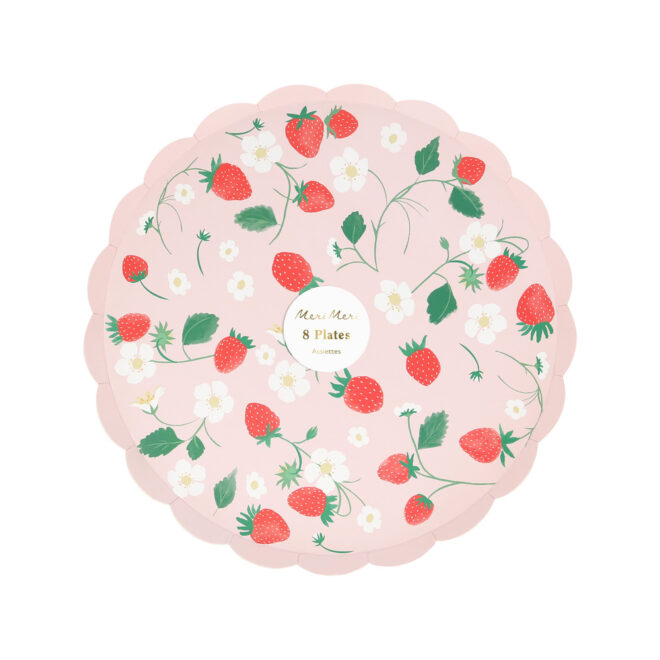 • Pale pink plates with a strawberry and flower design