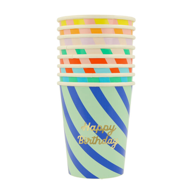 Striped happy birthday cups