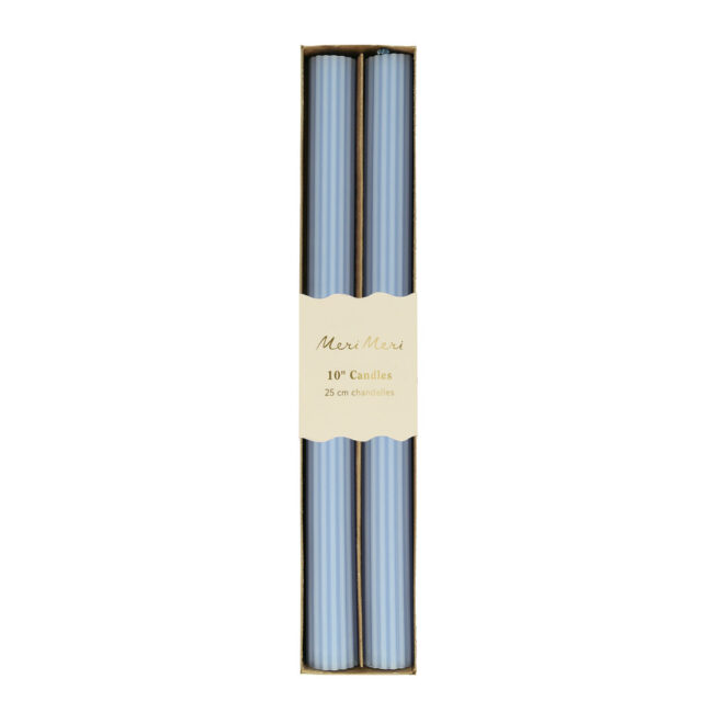 These striking pastel-blue candles have matching wicks with ridged details for an oh-so-stylish look. Use them to decorate your party table or mantel or give them as a fabulous hostess gift.